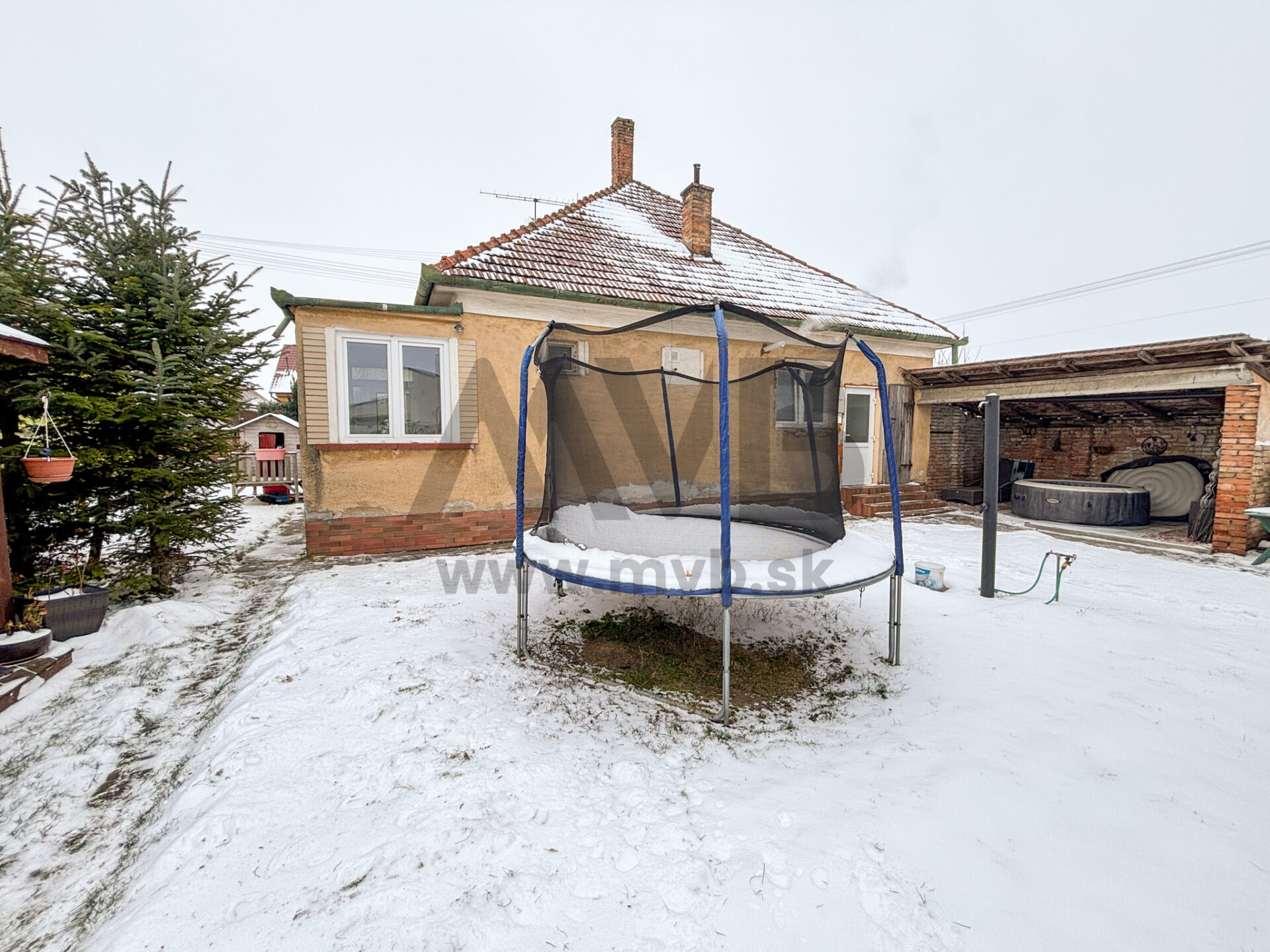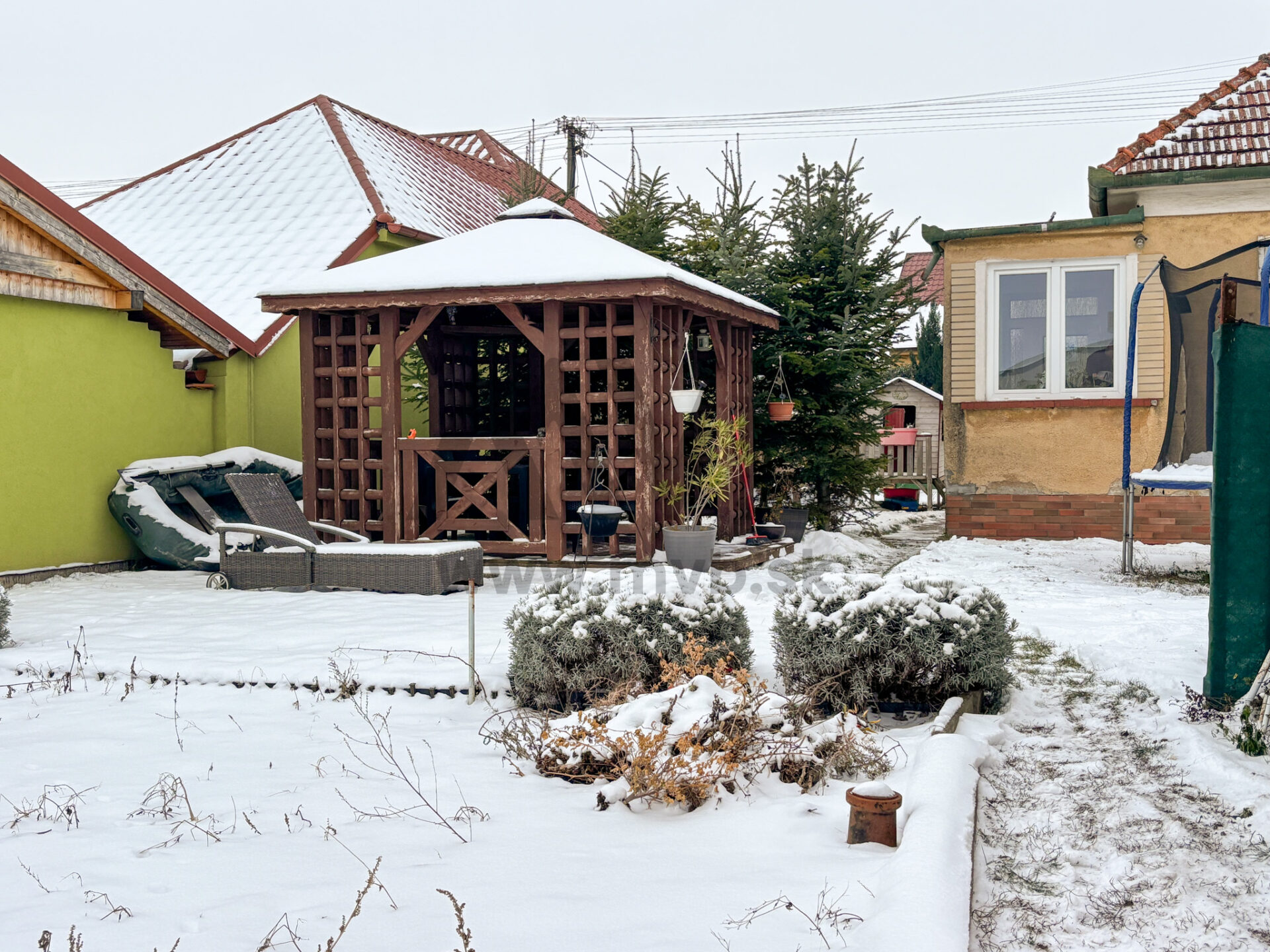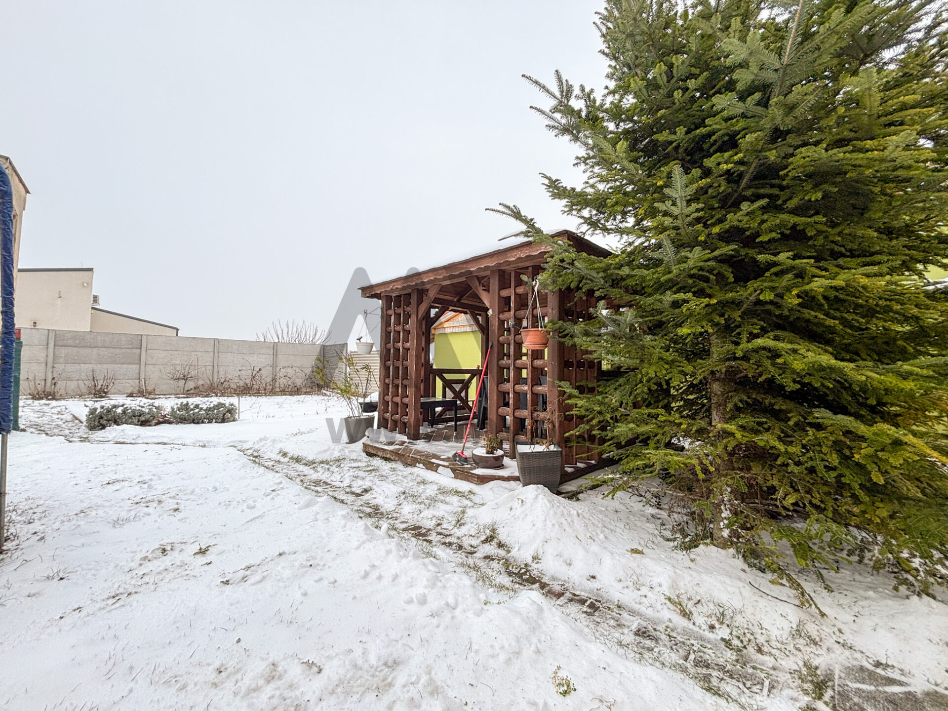 Na pozemku sa nachádza drevený altánok, ideálny na letné posedenia s rodinou a priateľmi. Súčasťou exteriéru je aj murovaný prístrešok, ktorý poskytuje priestor na relax, grilovanie a oddych počas celého roka.