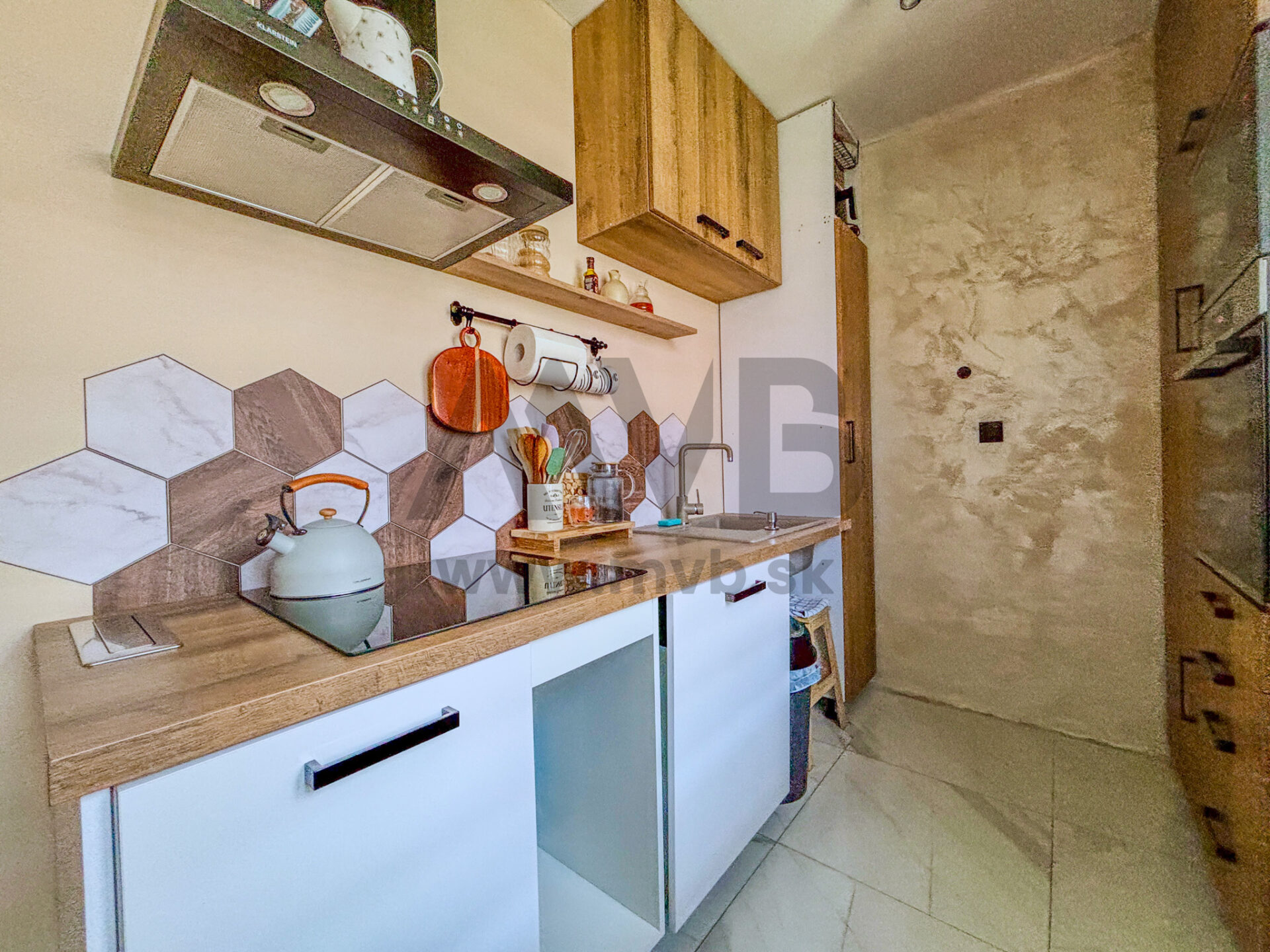 Nehnuteľnosť prešla kompletnou a kvalitnou rekonštrukciou – boli menené elektrické rozvody, podlahy, interiérové dvere a inštalovaná moderná kuchynská linka na mieru so vstavanými spotrebičmi (indukčná varná doska, chladnička s mrazničkou, rúra, mikrovlnná rúra a digestor).