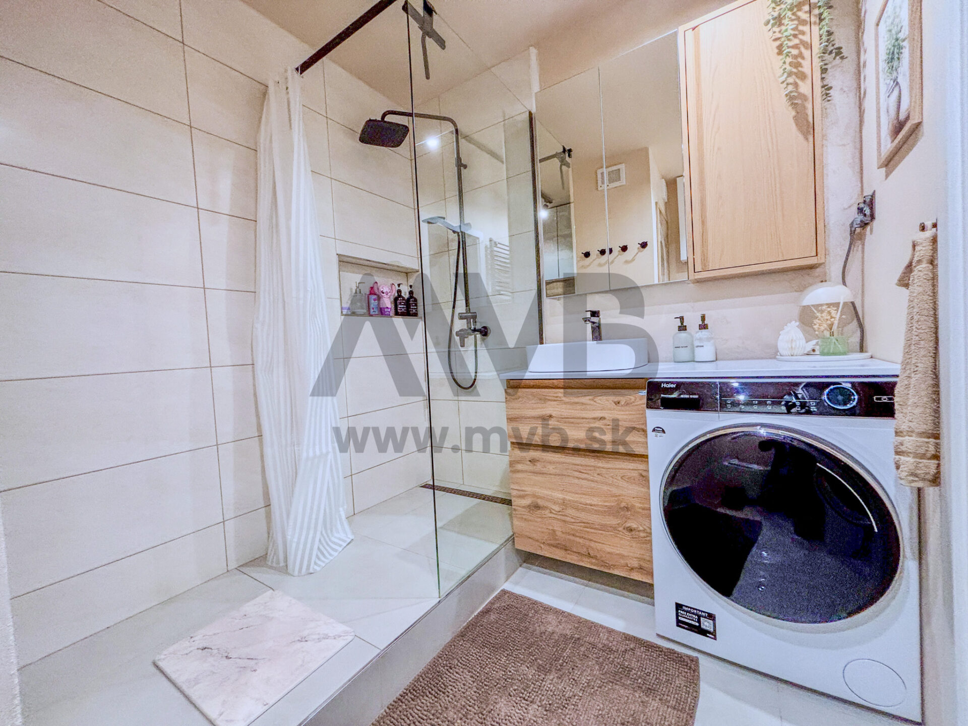 Byt disponuje klimatizáciou pre maximálny komfort počas celého roka. V izbách sa nachádzajú kvalitné plávajúce podlahy, zatiaľ čo kuchyňa, chodba a kúpeľňa sú riešené elegantnou dlažbou. Kúpeľňa je vybavená moderným sprchovým kútom typu walk-in. Samozrejmosťou sú bezpečnostné vstupné dvere.